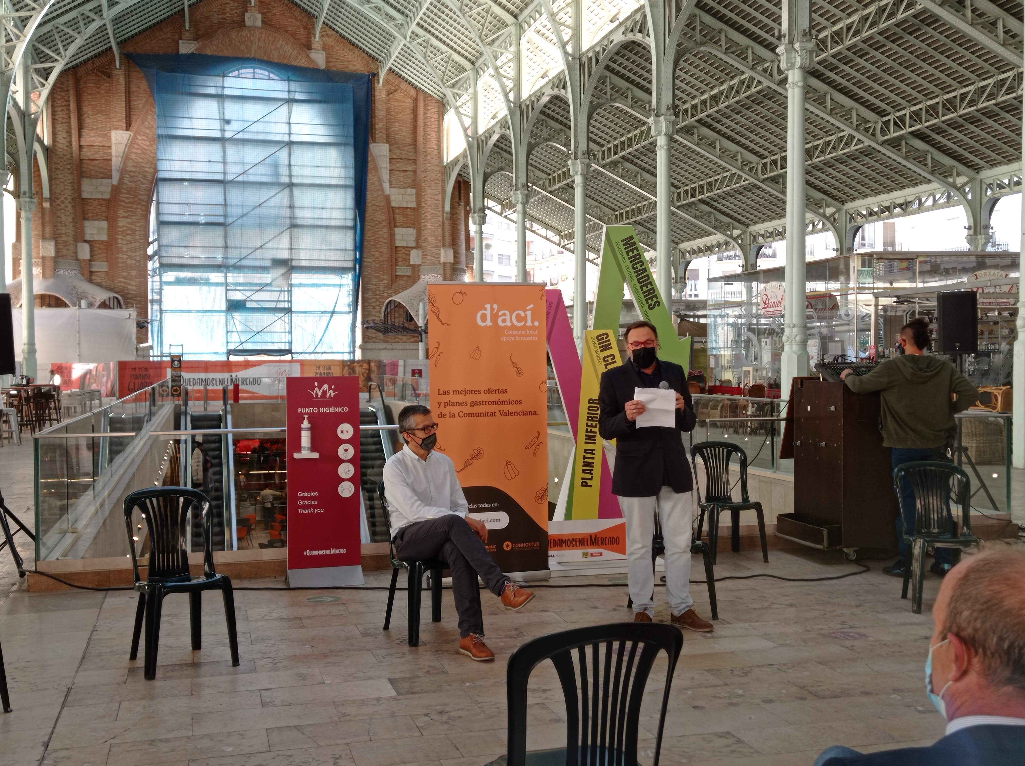 El Mercado de Colón de Valencia ha acogido esta mañana la presentación de la segunda edición de D’ací. En el acto han participado el Secretario Autonómico de Turisme, Francesc Colomer, el presidente de CONHOSTUR Manuel Espinar y el presidente de la Asociación de comerciantes del Mercado de Colón y empresario de hostelería Steve Anderson.