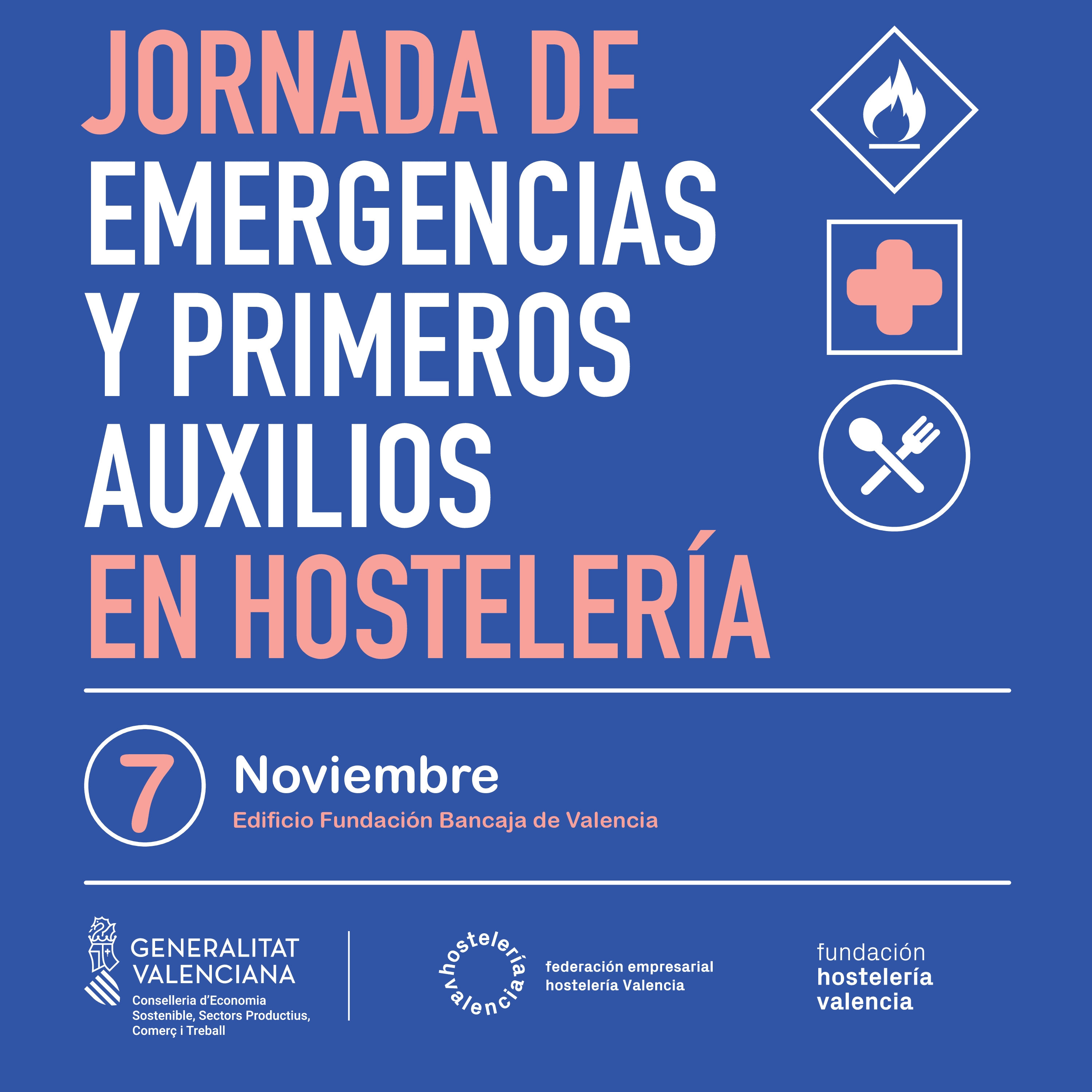 Hostelería Valencia con la colaboración de la Conselleria de Economía Sostenible, Sectores Productivos, Comercio y Trabajo organiza el próximo 7 de noviembre de 2022 a las 10h la jornada “Emergencias y primeros auxilios en hostelería”, dirigida a empresas, profesionales y alumnos de hostelería.