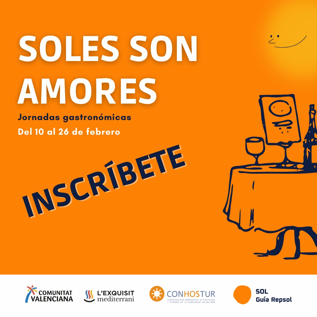 Con motivo de la celebración de la Gala de los Soles Guía Repsol 2023 el próximo 27 de febrero que acogerá la ciudad de Alicante y coincidiendo con la festividad de San Valentín CONHOSTUR, con la colaboración la Guía Repsol y Turisme Comunitat Valenciana-L’Exquisit Mediterrani, ponen en marcha las jornadas “Soles son amores” del 10 al 26 febrero de 2023.