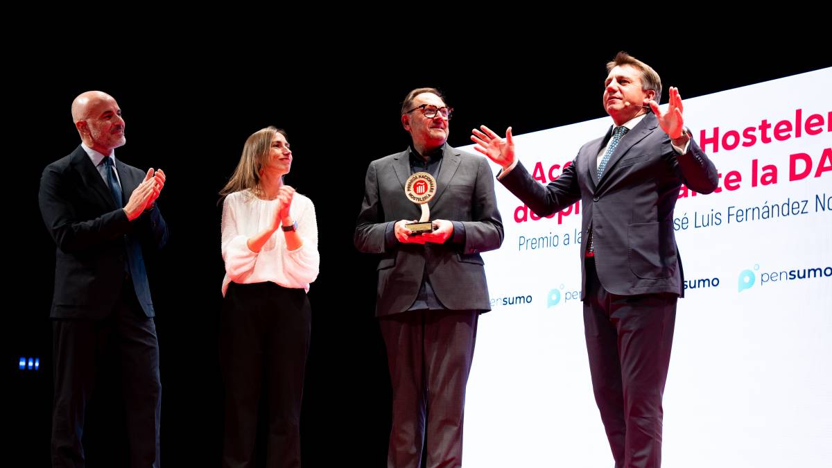 Entre ellos, desde Hostelería Valencia, tuvimos la oportunidad de recibir un reconocimiento muy especial. Se trata del premio a la concordia “José Luis Fernández Noriega” por la acción de la hostelería desplegada ante la DANA.