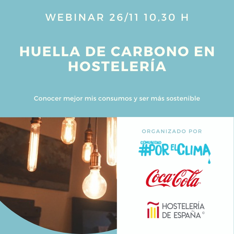 Este jueves, 26 de noviembre, a las 10:30h tendrá lugar el webinar Huella de carbono en hostelería: conocer mejor mis consumos y ser más sostenible, organizado por Hostelería #PorElClima, Coca-Cola y Hostelería de España.